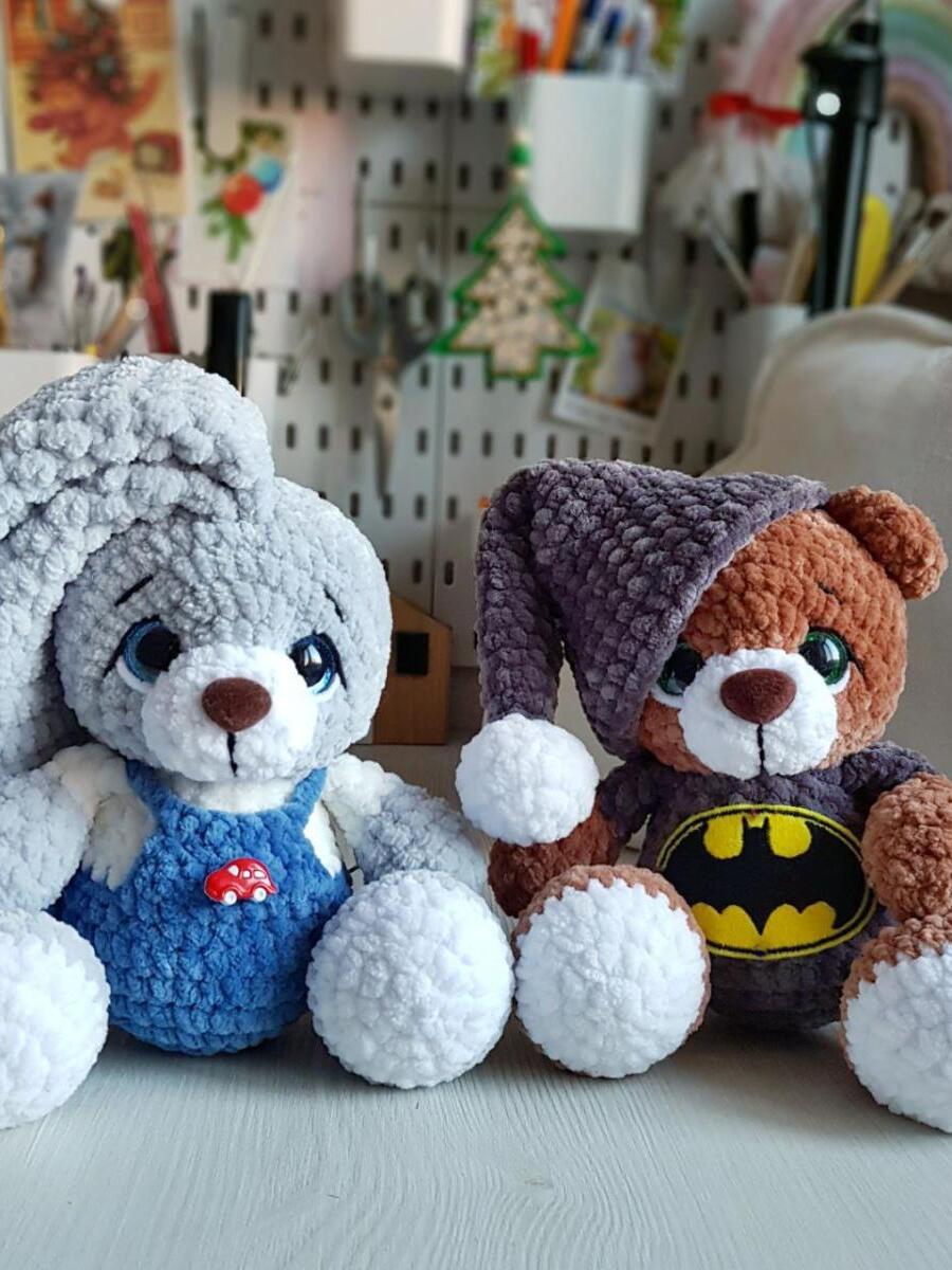 Рост игрушки полностью зависит от ВАШЕЙ плотности вязания и качества пряжи. У меня получается игрушка ростом 20 см без учёта ушек.