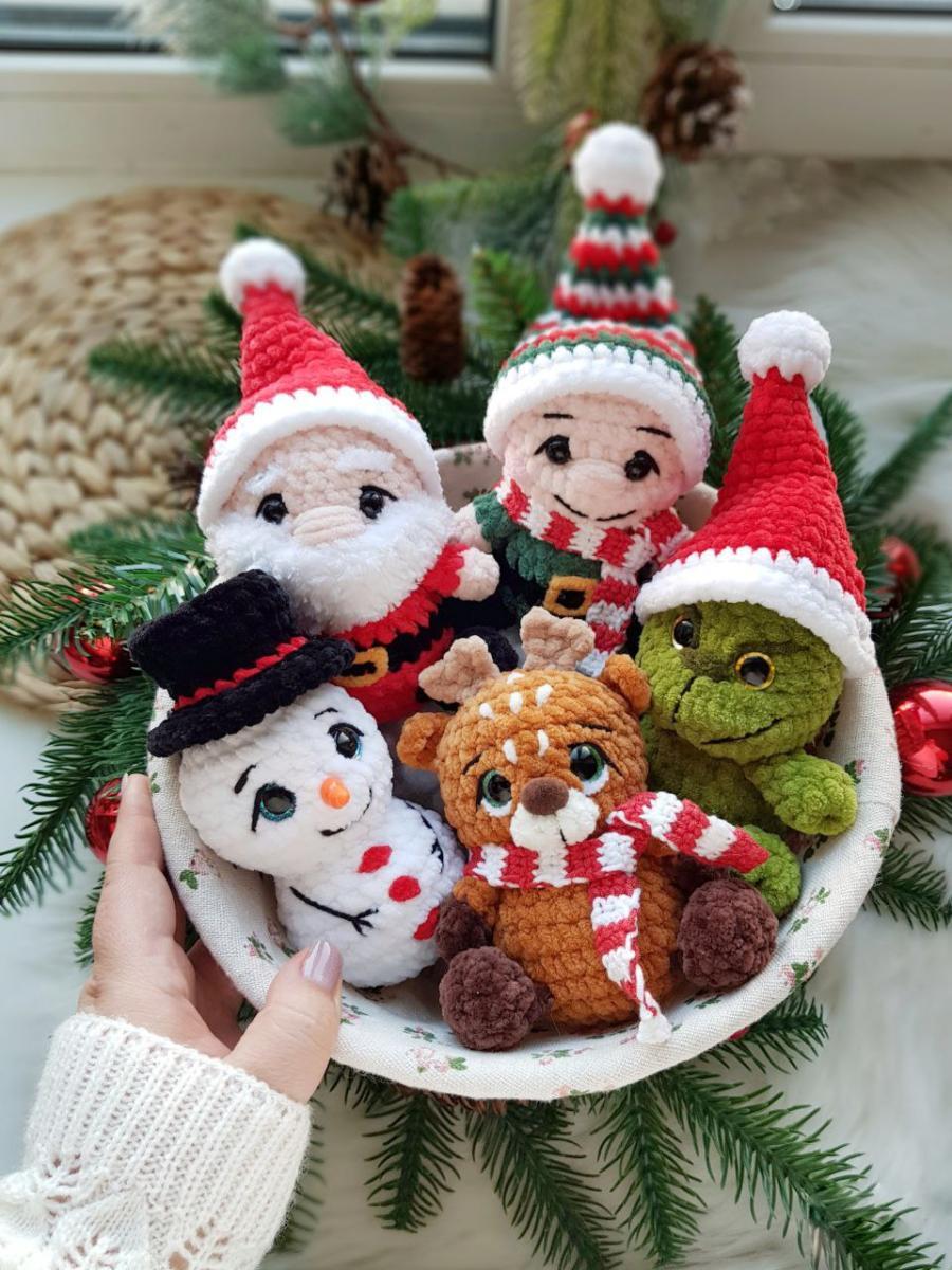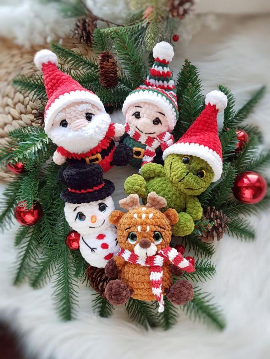 Санта, Гномик, снеговичок, оленёнок по 11см без учета рогов и шапочек;