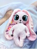 Подарите трогательный сюрприз! Этот плюшевый зайка с длинными ушами сохранит самые важные цифры вашего малыша: имя, рост, вес, дату и время рождения прямо на своем мягком ушке. Индивидуальная вышивка с данными новорожденного превращает игрушку в настоящую семейную реликвию и самый душевный подарок на выписку из роддома.