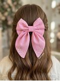 Бантик для волос со стразами — это стильный аксессуар, который подойдёт для школы, праздников и повседневной носки. Бантик выполнен из 100% хлопка, что делает его мягким, гипоаллергенным и комфортным для ежедневного использования. Размер бантика — 15 см, что обеспечивает аккуратный и элегантный вид. Крепление на заколке-крокодильчике гарантирует надёжную фиксацию на волосах.