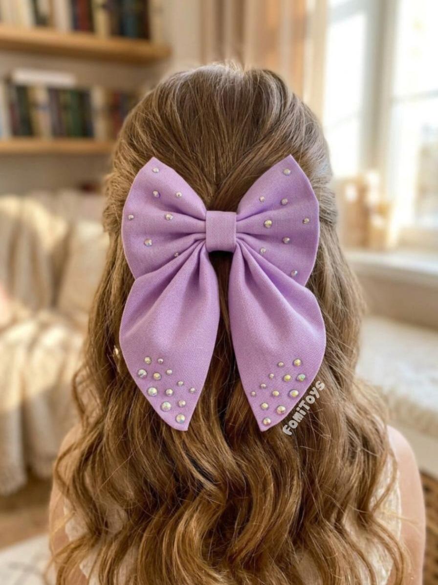 Бантик для волос со стразами — это стильный аксессуар, который подойдёт для школы, праздников и повседневной носки.