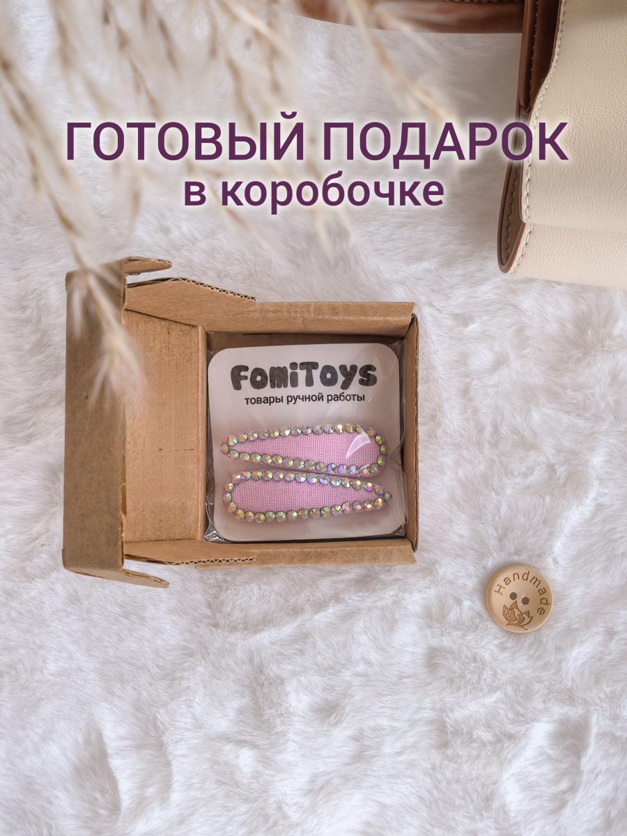 Эксклюзивные заколки ручной работы со стразами 5 см от FomiToys — универсальный аксессуар для создания стильных образов. Основание и изнанка пришиты вручную, стразы добавляют изысканный блеск. Доступны в белом и розовом цветах.